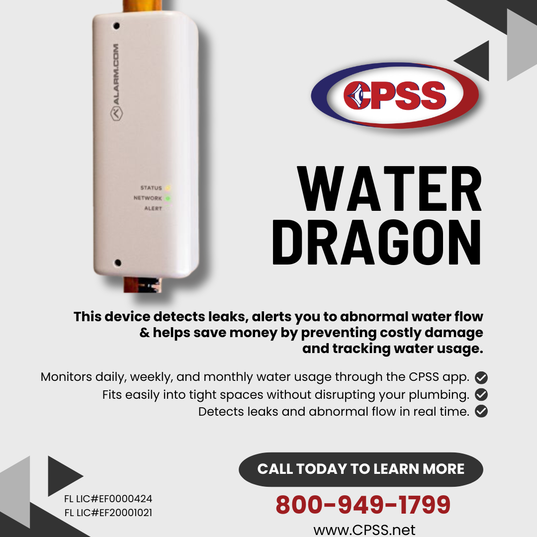 Protect your home from one of the most common (and expensive) household disasters. Add the Water Dragon to your security system today.  Call 800-949-1799 for more information.